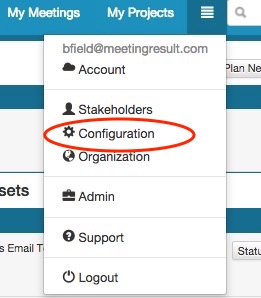 Step 1 - Choose the Configuration option from the main dropdown menu next to the search box at the top right of the screen.
