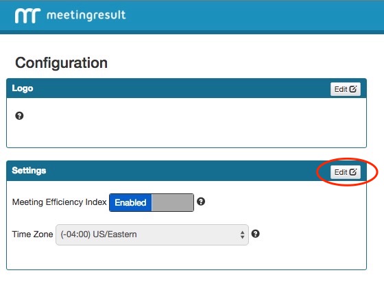 Step 2 - Click the Edit button at the top right of the Settings section on the Configuration page.